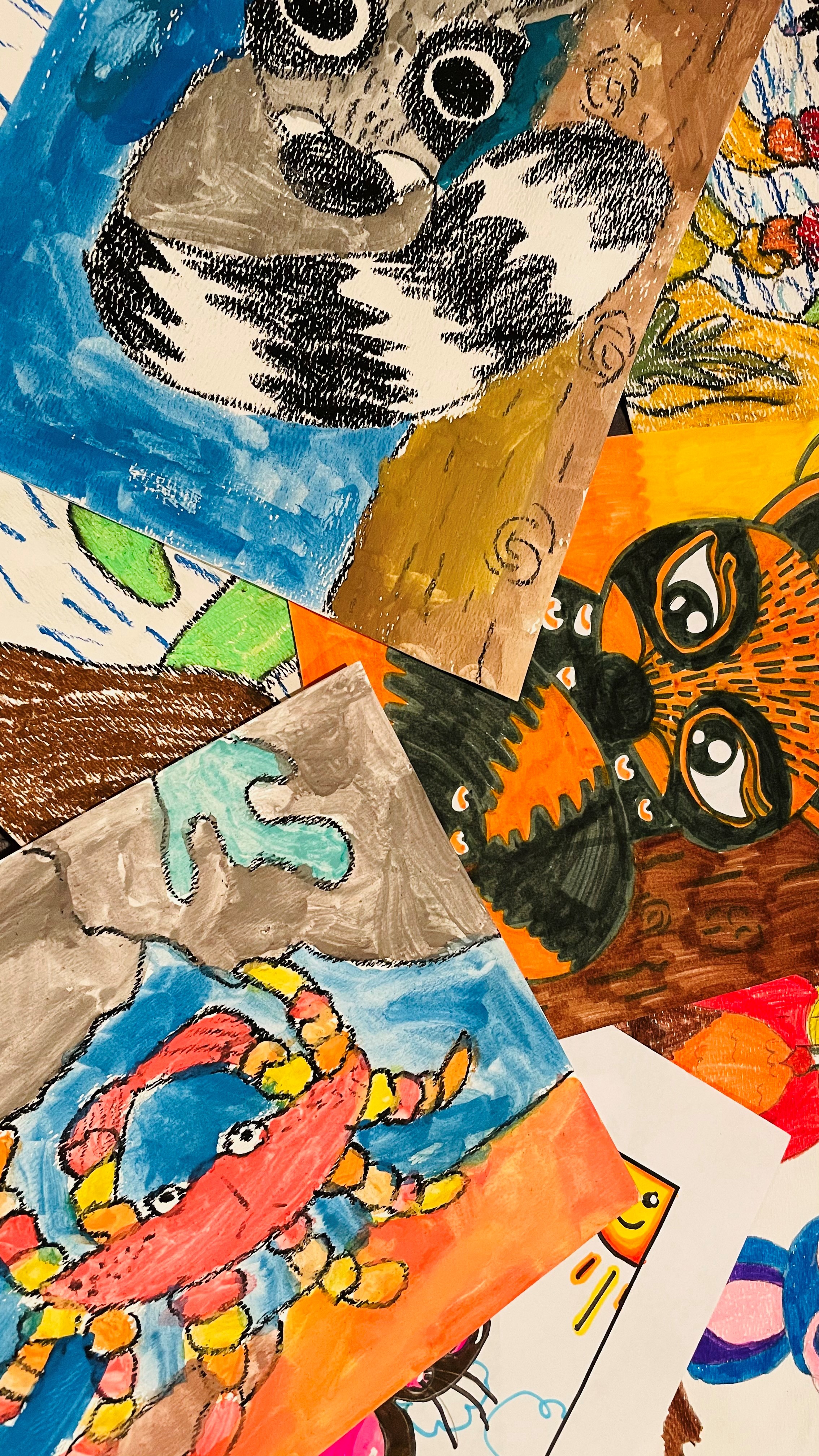 This is my picture of a circus tiger, done in watercolor pencils. I used a lot of orange. You draw with crayons or pencils, and you put color on the paper and some water over it. You can make different shades with this technique, and that’s why I really like it.