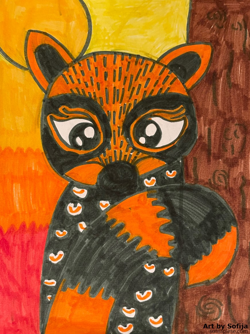 This is Foxy, the fox that loves sunsets and sunrises. I drew this picture following Patty’s instructions. Thank you, Patty! I wish to teach kids to draw beautiful pictures like this.